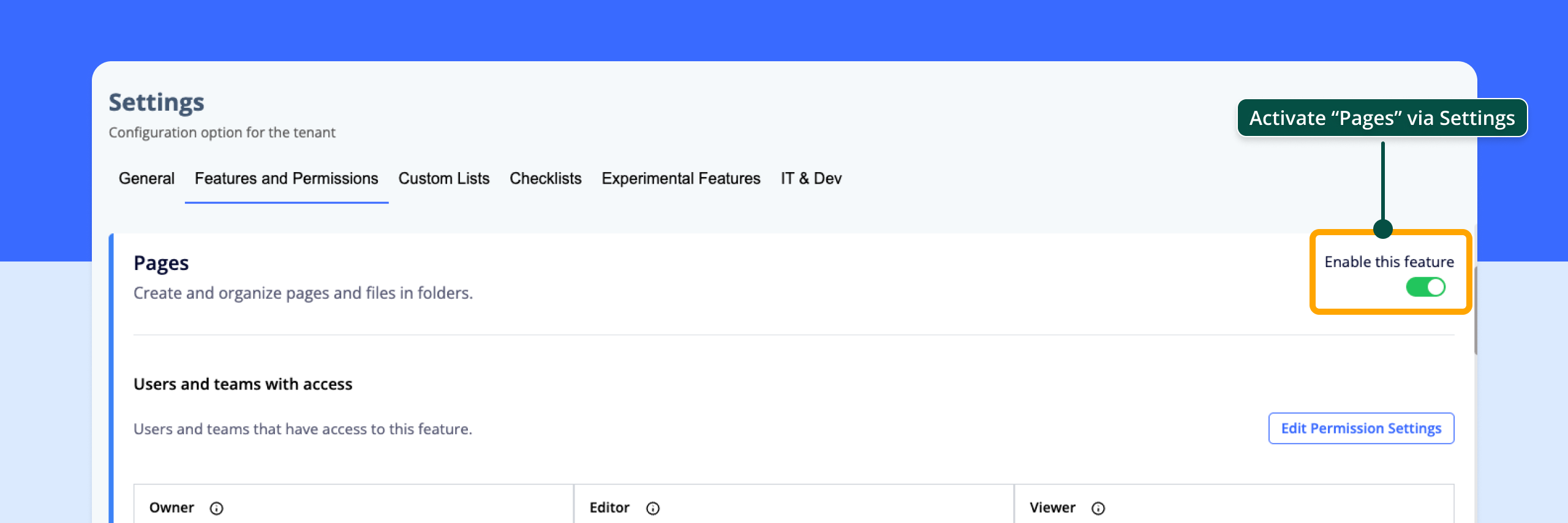 Tip: Start by giving Pages - Owner to those who will structure the content, then expand with Editor and Viewer once the structure is in place.