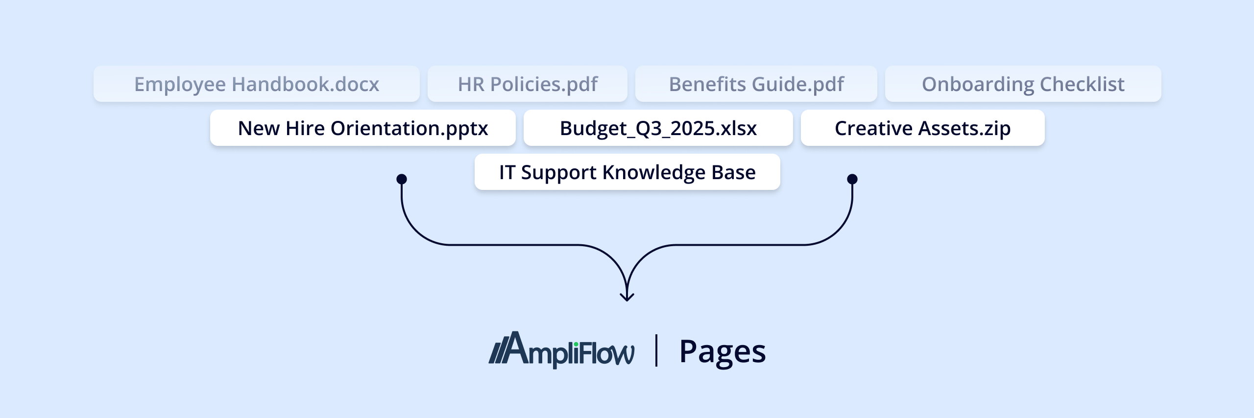 Common situation: Work instructions in AmpliFlow, policies in SharePoint, handbooks in PDF folders, onboarding materials in old email conversations.