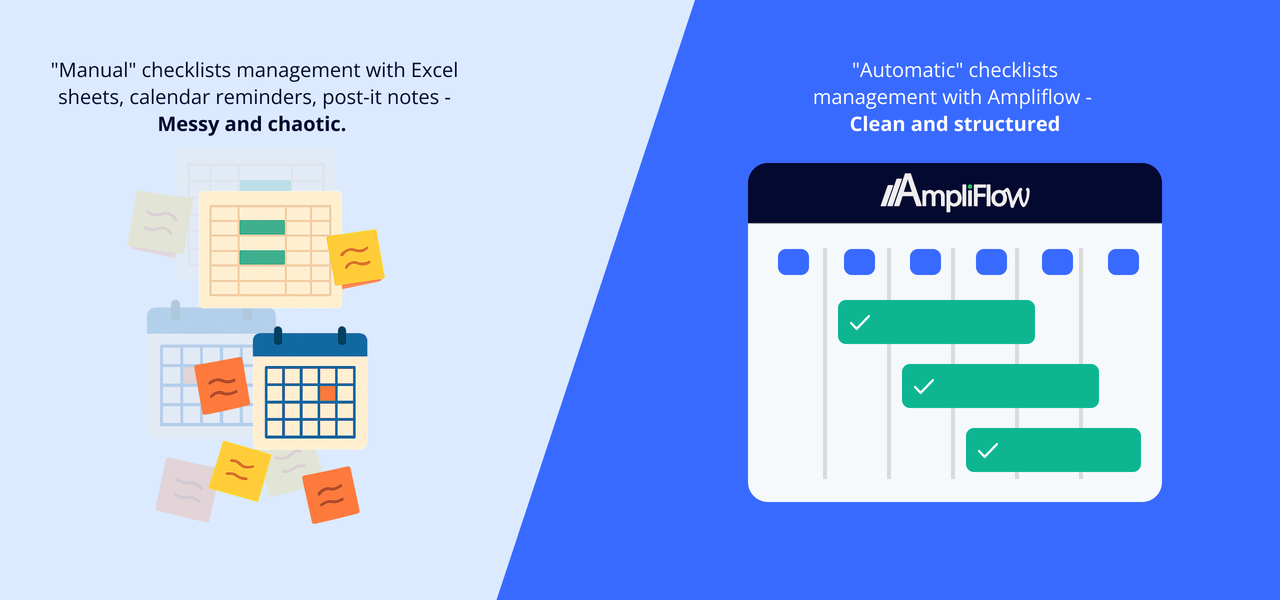 AmpliFlow has built-in support for recurring checklists with: